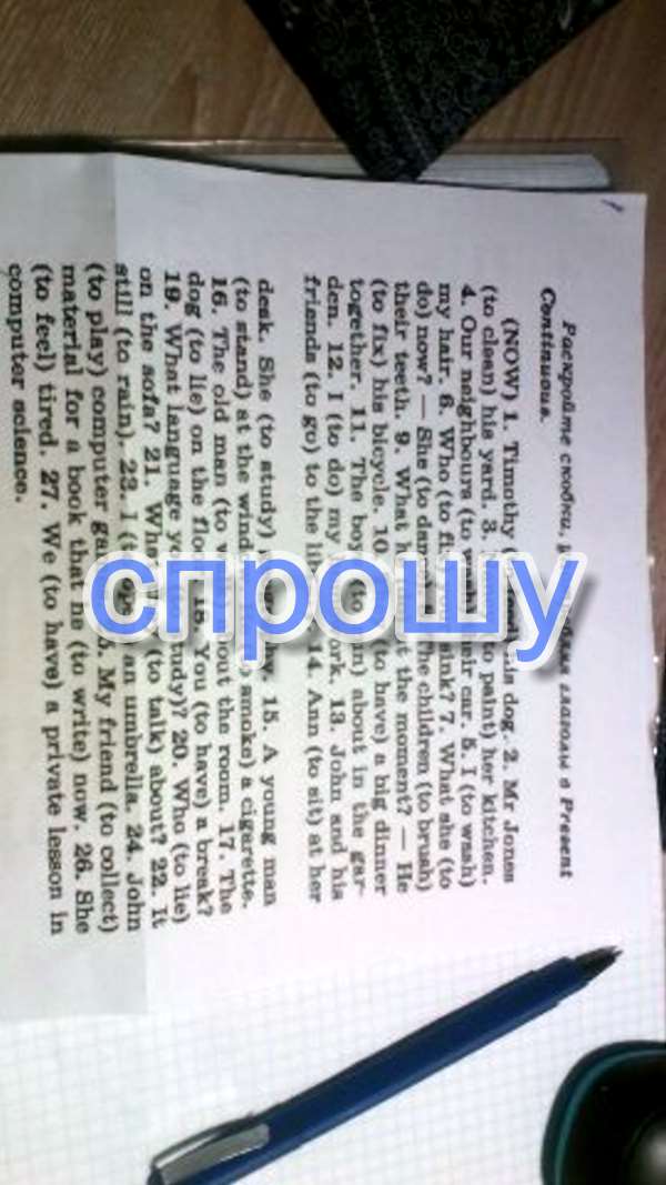 Помогите с английским. нужно поставить данные в скобочках глаголы в Presont Countonious. 1-24 предложения не надо, спасибо. а 25, 26,27, пожалуйста, помогите! буду ооочень признательна!