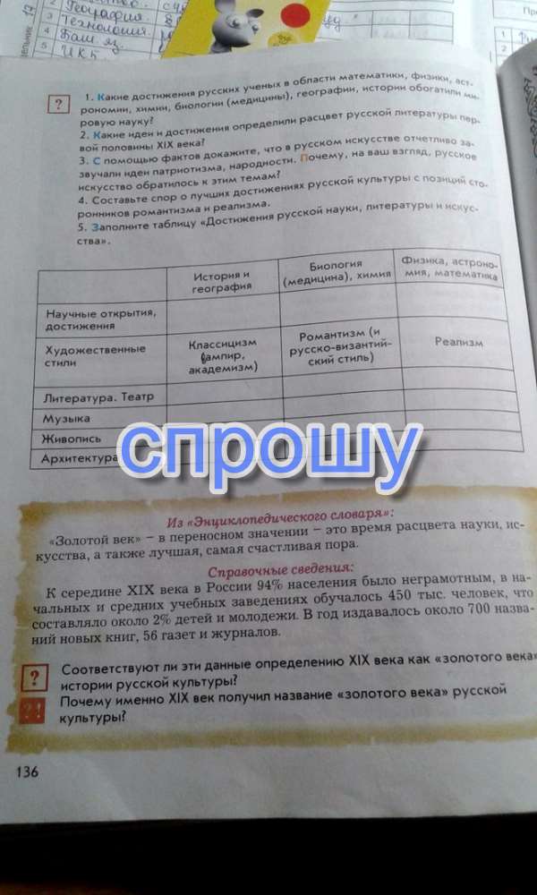 Заполните таблицу "Достижения русской науки ,литературы и искусства " пожалуйста,очень срочно нужно ..