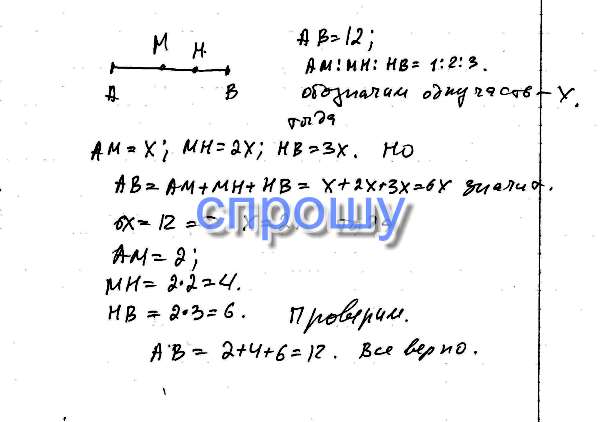 Точка М расположена на отрезке АВ а точка Н на отрезке ВМ. АВ = 12 и АМ:МН:НВ = 1:2:3