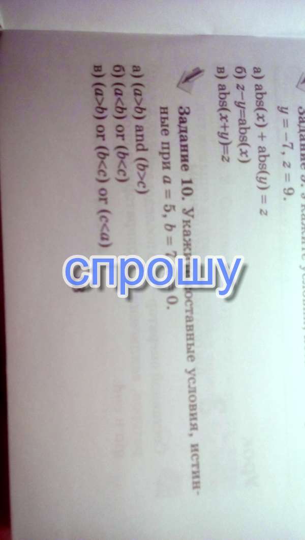 9уажите условия истинные при Х = 2, у = -7, z = 9