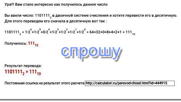 Перевести в десятичную систему 1101111