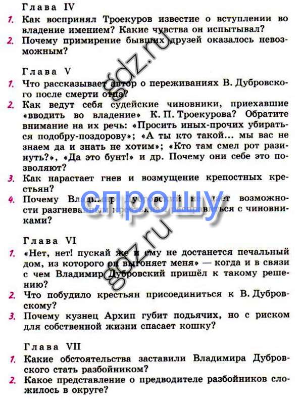 Дубровский 6 класс ответы на главы 4 5 6 7