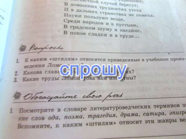 Оба отрывка из произведения Ломоносова, приведенные в учебнике, относятся к высокому «штилю».