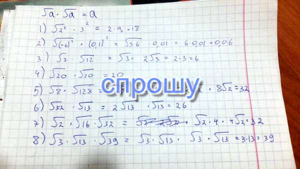 1) √2²×3² 2)√(-6)²×(0.1) ² 3)√3×√12 4)√20×√20 5)√8×√128 6)√52×√13 7)√2×√16×√32 8)√3×√13×√39 помогите пожалуйста добрые люди!
