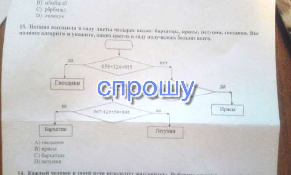 Бархатцы, т.к. при выполнении операций получаются неправильные значения, следовательно идем по ветке "нет"