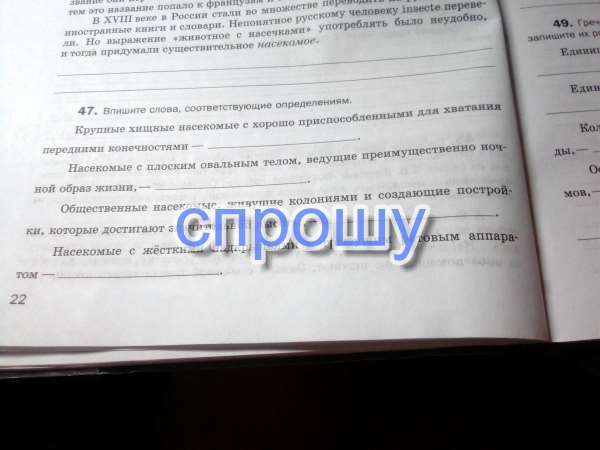 Впишите слова в соответствующие определениям :тараканы богомолы термиты маравьи жуки.