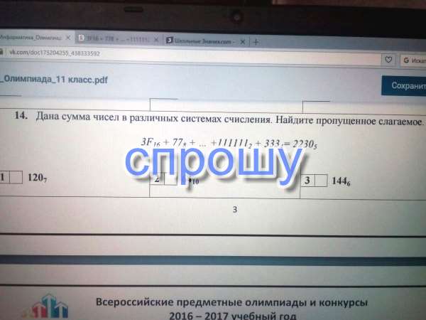 Дана сумма чисел в различных системах счисления. Найдите пропущенное слагаемое.