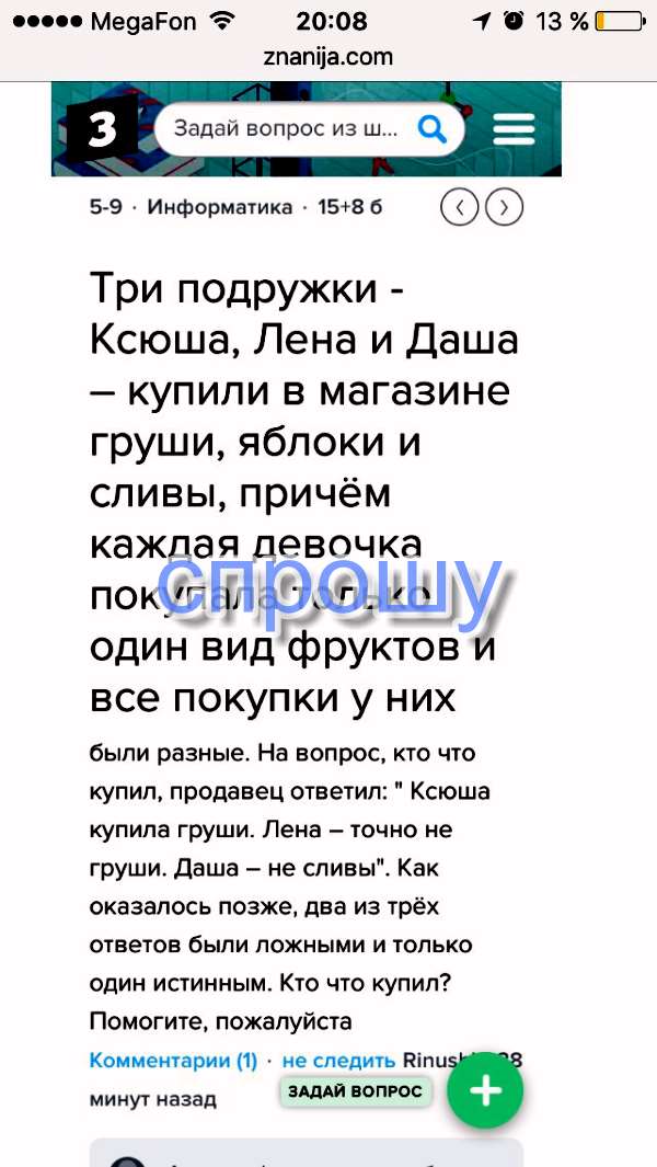 Если же утверждение 2 окажется верным, то утверждения 1 и 3 должны быть ложны, опять же, исходя из условия нашей задачи. Но в таком случае получается, что никто из девочек не покупал груш, ибо высказывания примут вид: