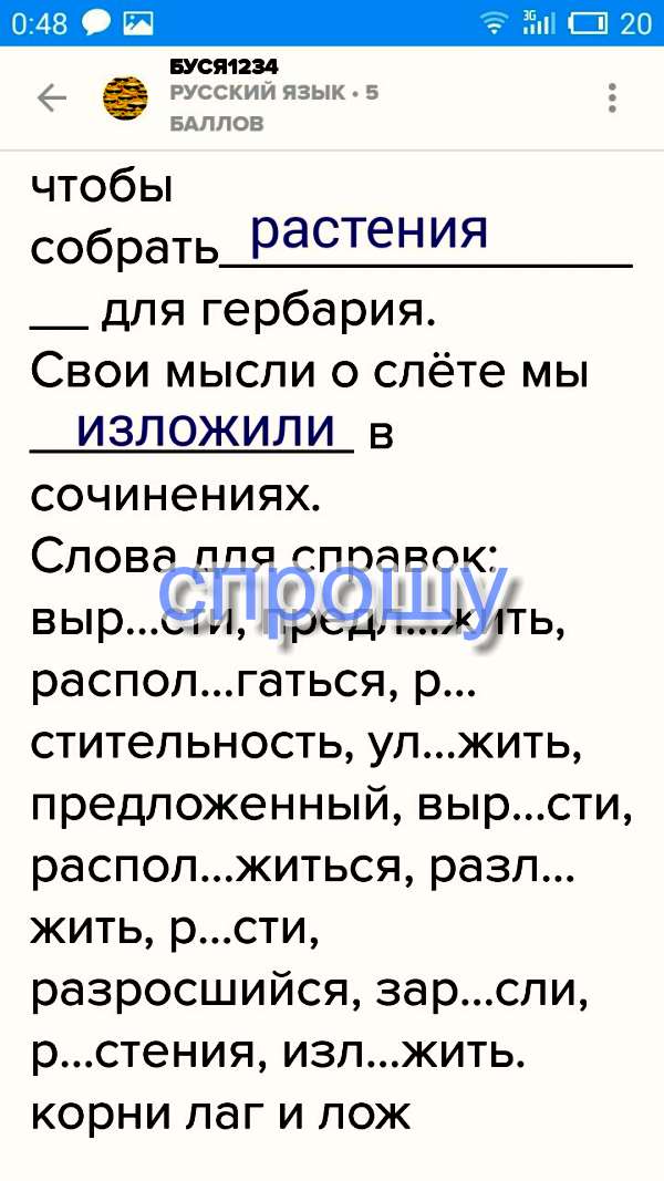 Слова для справок: выр…сти, предл…жить, распол…гаться, р…стительность, ул…жить, предложенный, выр…сти, распол…житься, разл…жить, р…сти, разросшийся, зар…сли, р…стения, изл…жить. корни лаг и лож