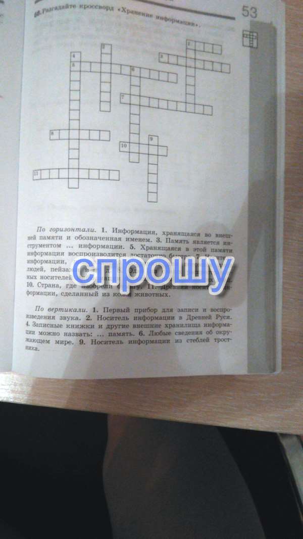По горизонтали: 1. Файл. 3. Хранения. 5. Оперативная. 7. Фотография. 8. Бумага. 10. Китай. 11. Пергамент.