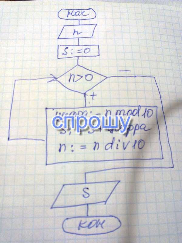 Дано натуральное число n.Определить сумму его цифр. Как преобразовать это в блок-схему по алгоритмизации?