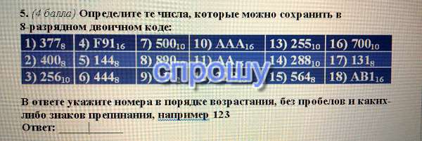 Определите те числа, которые можно сохранять 8разрядном двоичном коде