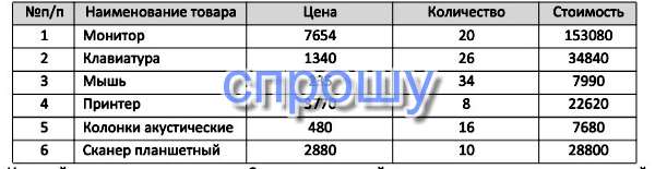 На какой позиции окажется товар *Сканер планшетный* , если произвести сортировку данных по возрастанию столбца КОЛИЧЕСТВО?