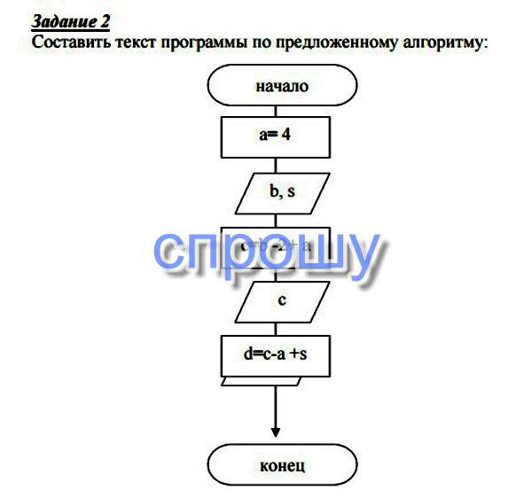 Составить текст программы по предложенному алгоритму
