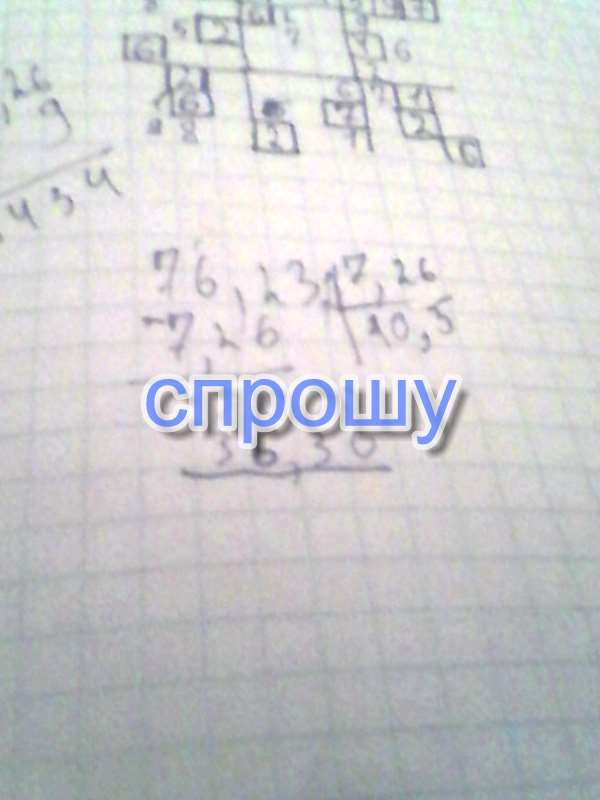 Надо перенести запятые,чтобы запятой вообще не стало, например тут переносим на два символа и делим 7623 на 726. А если например 1.677 делим на 1.8, то тут надо перенести на 3 символа и тога получится 1677 делим на 1800. Чтобы в обоих числах не было запятых