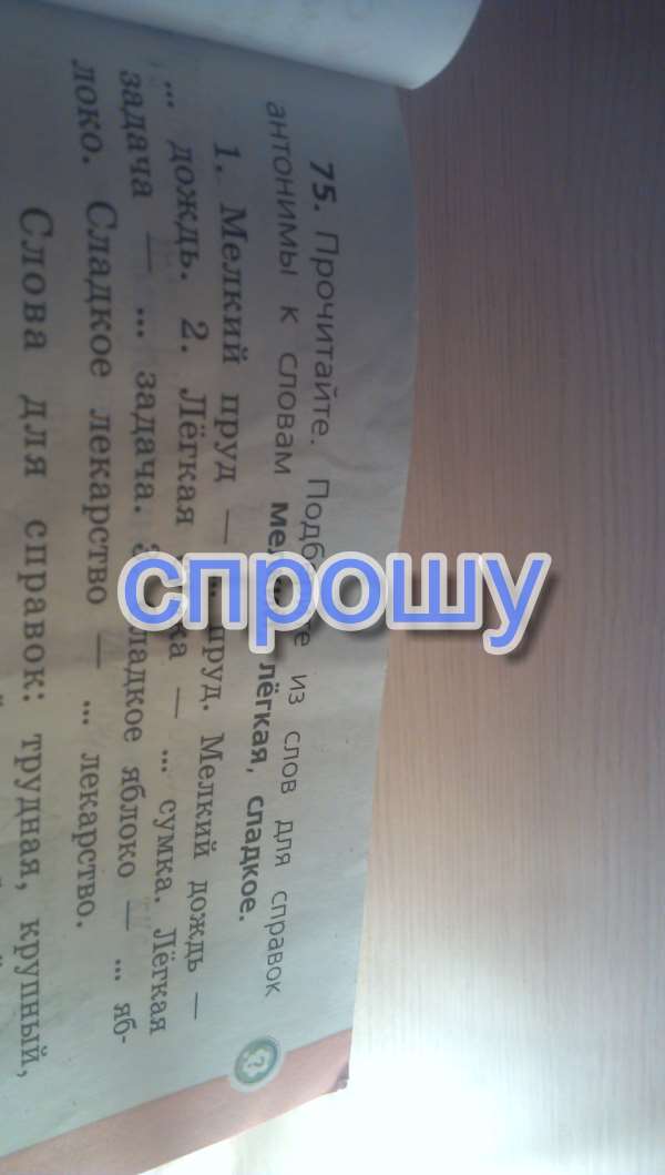 Упражнение 75 подберите к словам антонимы мелкий,лёгкая ,сладкая