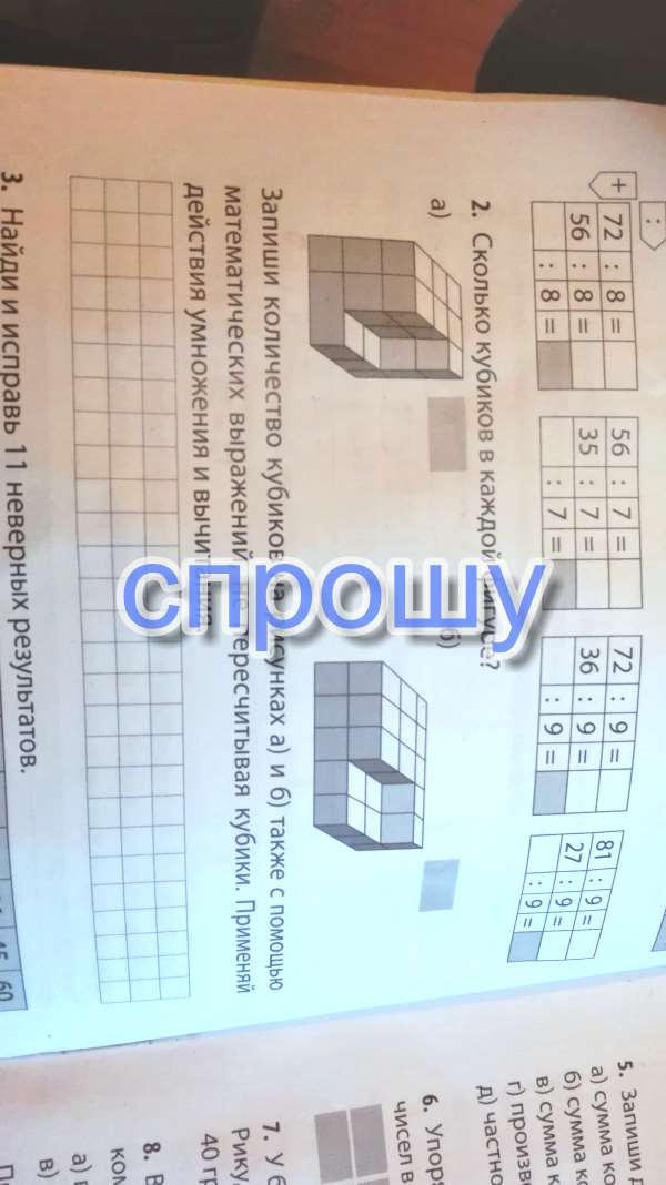 А) в высоту кубиков должно быть 3, в ширину тоже 3, в ряду 3*3=9