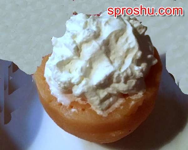 Теперь осталось дело за малым нужно взять половинки и в них выложить взбитые сливки, и можно подавать к столу супер-пупер десерт. Многие не могут сообразить, что это за фрукт. Говорят, что похож на персик. Возможно это и было то, что подавали султану. Изысканное блюдо. Возможно для Султана оно нравилось, но я делаю всего пару раз мне не очень-то сильно всё это нравится, да я и не сладкоежка.
