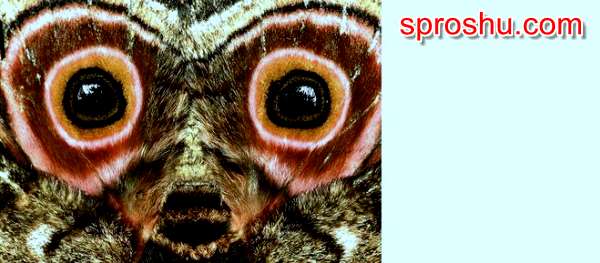 Вот и это "непонятное существо", как будто бы смотрящее огромными глазами с фотографии прямо на нас - удивительная защита, нанесённая самой природой на крылышки бабочки, которая называется Императорским мотыльком.