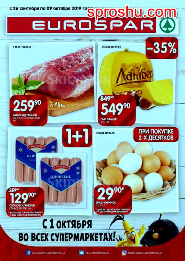 Какие акции в Евроспар с 26 сентября 2019 года? Скидки в каталоге, какие?
