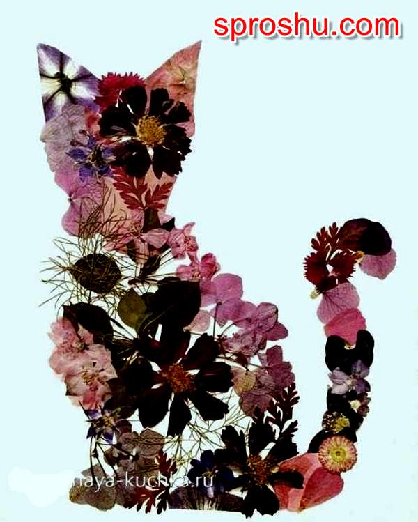 Как сделать такую цветочную кошку из гербарных цветов (см.)?