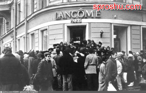 При тех условиях,что одежда была в магазинах практически одинаковая, а что-то модное или в одном екземпляре или по знакомству отлаживали или покупали у спекулянтов, деньги были, а купить что-то фирменное или вообще модное было сложно. Вот и люди толпятся, чтобы не упустить возможности прикупить заграничную ( брендовую,как сейчас говорят) шмотку.
