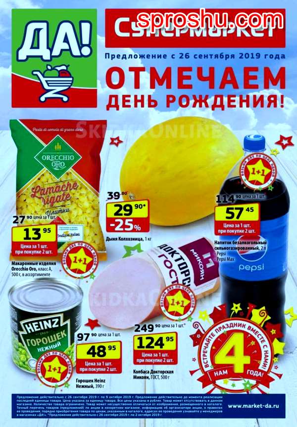 Акции и скидки в Да! с 26 сентября 2019 года, какие? Что в каталоге?