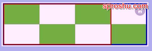 Периметр синего прямоугольника ( обозначим, как Рс ) равен периметру красного прямоугольника ( обозначим, как Рк ) плюс сумма длин двух больших сторон зелёного прямоугольника ( обозначим, как 2Сз ): Рс = Рк + 2Сз