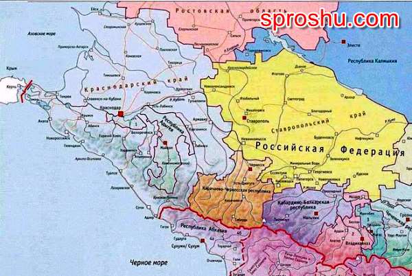 И на юге Краснодарский край граничит с Республикой Абхазия, непризнанной многими странами.