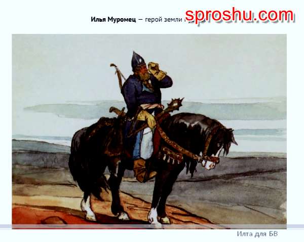 Этот проект сделать не сложно. Перед работой необходимо ознакомиться с текстовыми материалами, в которых рассказывается о жизни и подвигах Ильи Муромца. Начать презентацию нужно с титульного слайда, где напишем название проекта, кто выполнил, школу, город, год. На втором слайде можно написать цель и задачи проекта. С третьего слайда раскрываем основную тему.