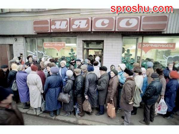 Не знаю, в каком это "СССР" были очереди за мясом. В моём СССР никаких очередей за магазинным мясом не было. Как и самого мяса в магазинах. Очень долгое время я жила в твёрдой уверенности, что мясо продаётся исключительно на рынке, а буковки "Мясо" на магазинах - это такое же эстетическое творчество как "Народ и Партия - едины" или "Слава советским труженикам". Мало ли что на стенах пишут...