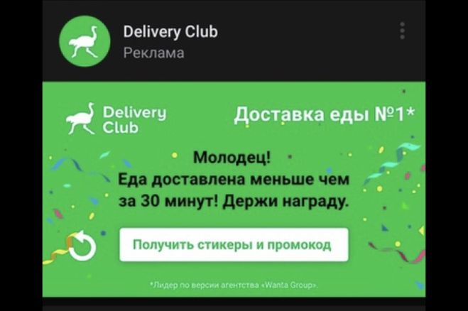 - В новостной ленте найти рекламную запись Деливери Клаб, в которой будет ссылка на игру.