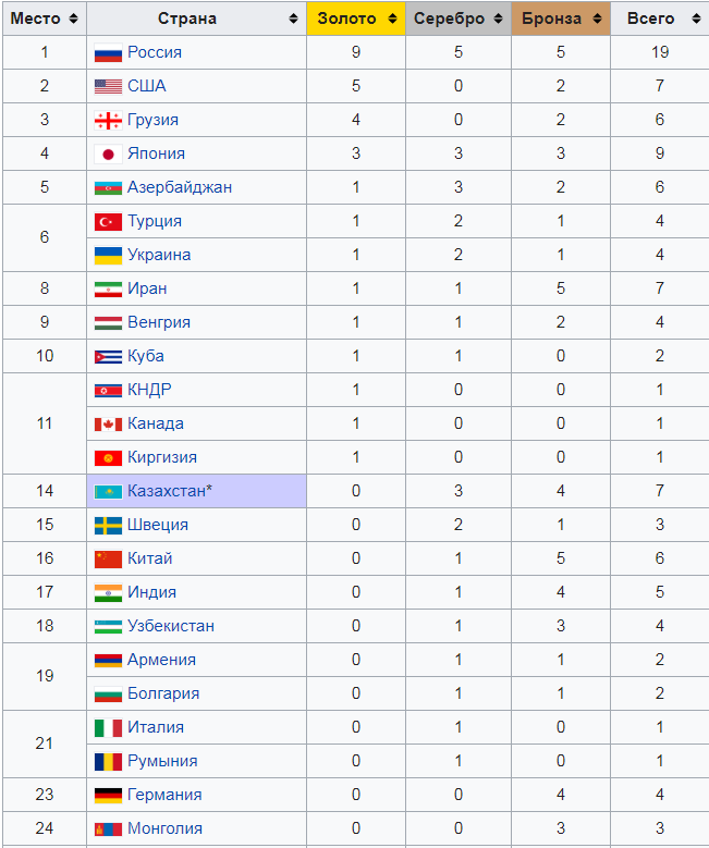 Борьба. ЧМ-2019. Нур-Султан. Какой общий медальный зачет?
