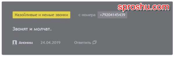 Звонки с этого номера поступают немые и короткие. Причем неоднократно. Отзывов очень много. Но информативных отзывов - всего 1 или 2 за сентябрь 2019. И в них люди написали, что перезвонили и прослушали рекламу: микрокредитная организация кредит-сервис предлагает микрозаймы. Входящие звонки на такие номера часто платные, поэтому без проверки в интернете не стоит перезванивать. Вообще этот кредит-сервис использует много номеров. И для каждого из них стоит найти место в черном списке - сами не отстанут, а автодозвону все равно...