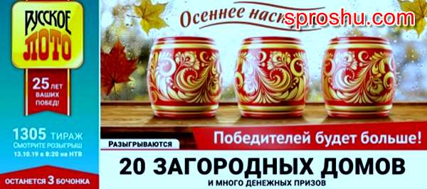 Тринадцатого октября 2019 года состоится 1305 тираж розыгрыша от Русского лото.