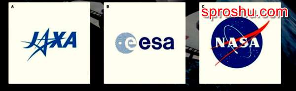 Но вернемся к нашему вопросу. Так как название длинное, значит на логотипе должна быть аббревиатура, по английскому название пишется следующим образом: National Aeronautics and Space Administration, сокращаем и получится NASA. Ну а теперь по названию не сложно выбрать верный ответ, так как такое название только в одной картинке.