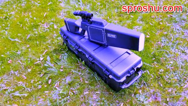 Поскольку новейшие БПЛА помимо внешнего управления снабжены еще и собственными "мозгами", то и на них нашли управу - пока это "щадящий" вариант "Гроза-Р2" - передатчик помех для противодействия таким "птицам", они разворачиваются и улетают обратно: