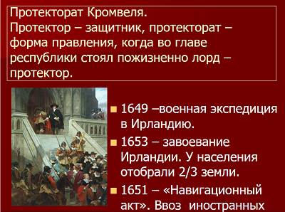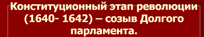 октябрь 1641 г. //восстановление католической Ирландии//борьба между королем и парламентом по поводу того, кто должен контролировать армию для подавления ирландского восстания.