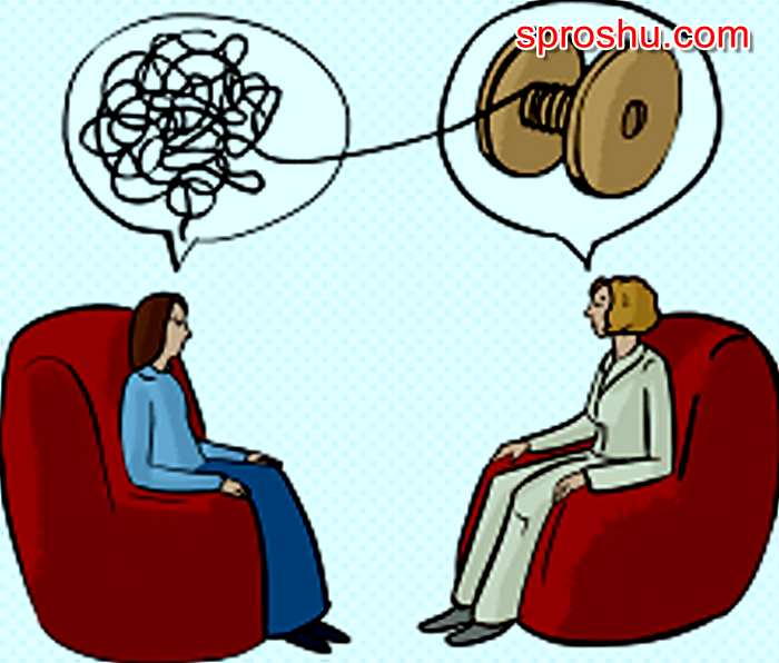 На юмористической картинке ниже нарисовано, как психолог (справа) пытается разобраться в мыслях своей пациентки: размотать путаный клубок разбежавшихся в разные стороны мыслей и аккуратно смотать его снова):