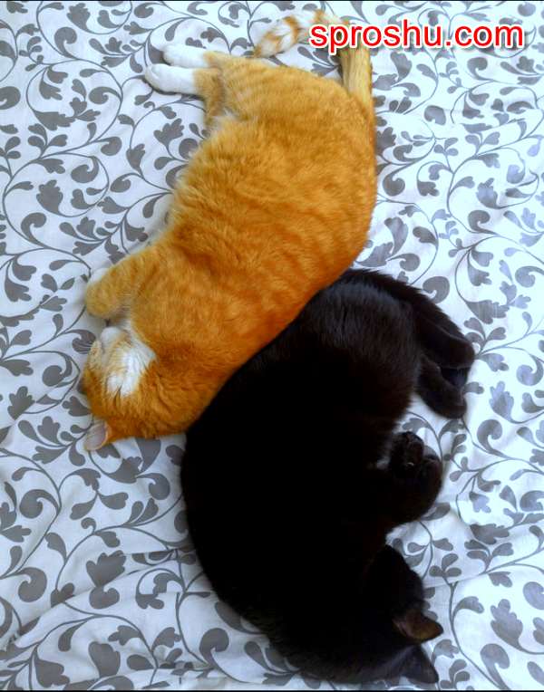 И у меня последнее фото с котами, которые лежат рядышком. Назвала их на этой фотке- Инь и Янь.