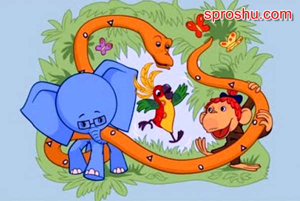 Каждое утро герои сказки встречались и затевали какую-нибудь новую игру, вот так однажды они решили измерить Удава, причём измеряли и Мартышками, и Слоненком и в итоге решили измерить попугаями.