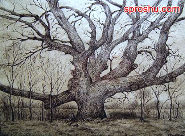 Здесь дуб - хозяин и хранитель леса и его обитателей, "теремок" для лесной живности, призыв ктому, что и наш "великий и могучий"