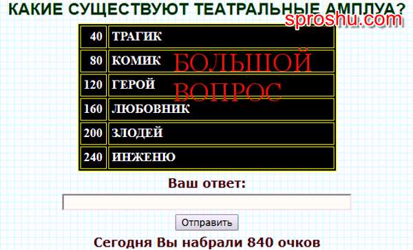 100 к 1. Какие существуют театральные амплуа (интерактивная игра)?