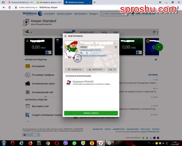 - теперь на открывшейся странице "Мой профиль" (на ближнем скрине) нажмите на "Перевести",