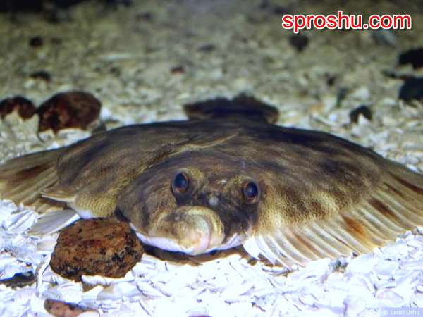 Вообще то камбала хищная рыба, и питается всевозможной живностью. Это могут быть двустворчатые молюски, рачки, планктон, мелкая рыбешка. Охотится из засады, маскируясь песком, или меняя свой цвет под цвет грунта. Для человека не опасна, у нее нет ядовитых колючек.