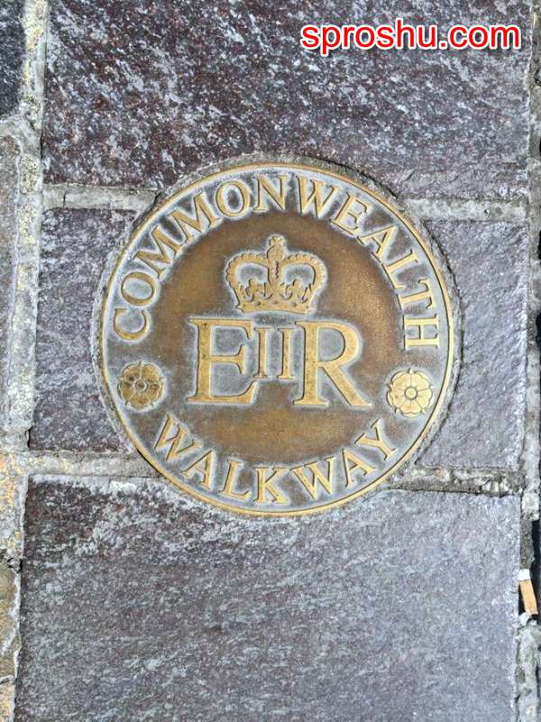 Монограмма Елизаветы второй и надпись "Путь к общему богатству". Может это дорожка к Букингемскому дворцу. Или банку.