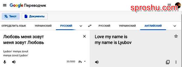 Но вот что получается, если в Google переводчике написать эту же фразу, но поставив имя Любовь в начале (Любовь меня зовут):