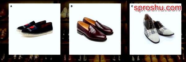 Теперь рассмотрим картинки, на них мы видим, что только на картинке А у обуви веревочная подошва, соответственно это и будет правильным ответом.