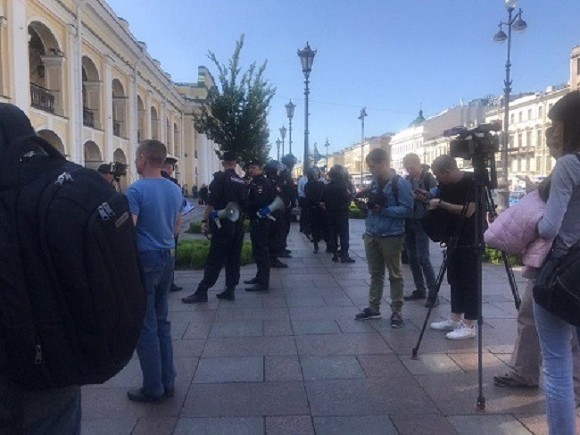 Пикеты были У ТЦ "Галерея", на Дворцовой площади, на углу Большой Морской улицы и Невского проспекта рядом с домом Зингера, напротив Казанского собора, и у метро "Гостиный двор".