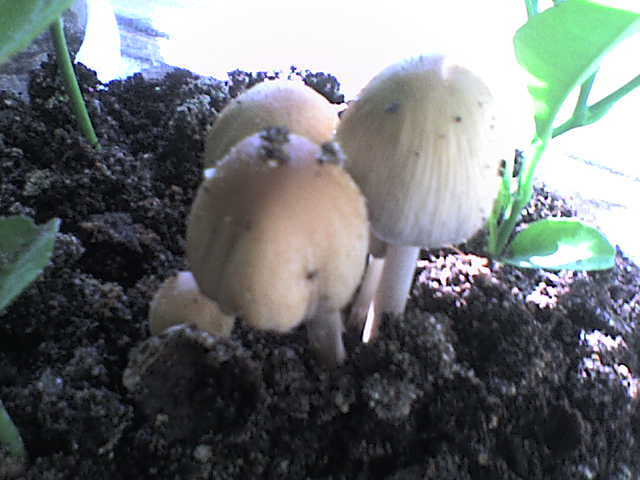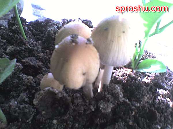 Вот такие? Так это просто надо ограничить полив, хорошо прорыхлить почву. Я ещё поливала раствором марганца и луковой шелухой. Очевидно споры грибов есть везде в почве и при благоприятных условиях они начинают прорастать. А вообще в народе это считается хорошим знаком. Грибы всегда к богатству и благополучию.